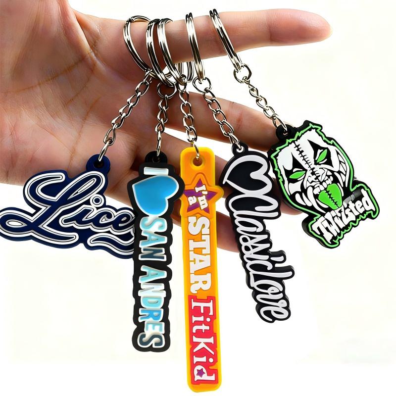 In terms of materials and structure, the display included soft PVC flat keychains, high-relief 3D PVC designs, single-sided and double-sided structures, enamel keychains, cut-out designs, ultra-thin constructions, combined structures, rotating designs, and multi-color complex finishes. This centralized presentation not only highlights product diversity but also clearly demonstrates the factory’s maturity and stability in structural design and craftsmanship execution.