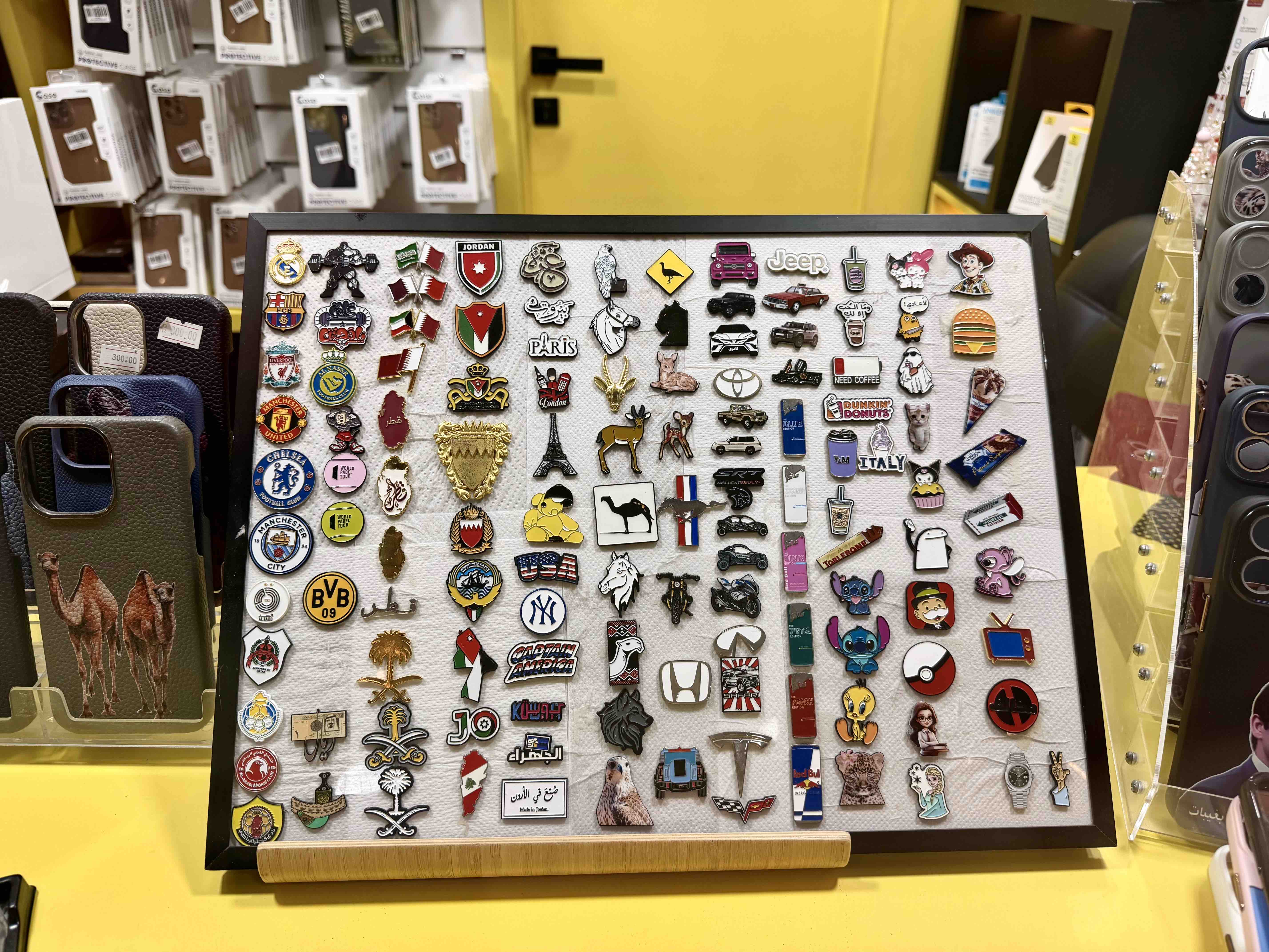 By changing back attachments, flat badges can be adapted for multiple uses. Traditional pin backs remain suitable for classic wearing, while magnetic backing enables “no-damage, no-piercing” attachment—especially popular in Middle Eastern markets for lightweight fabrics. Further extensions include converting badges into phone stickers or electronic device decorations using 3M adhesive. At the booth, products were displayed on various phone cases to demonstrate real-life applications.