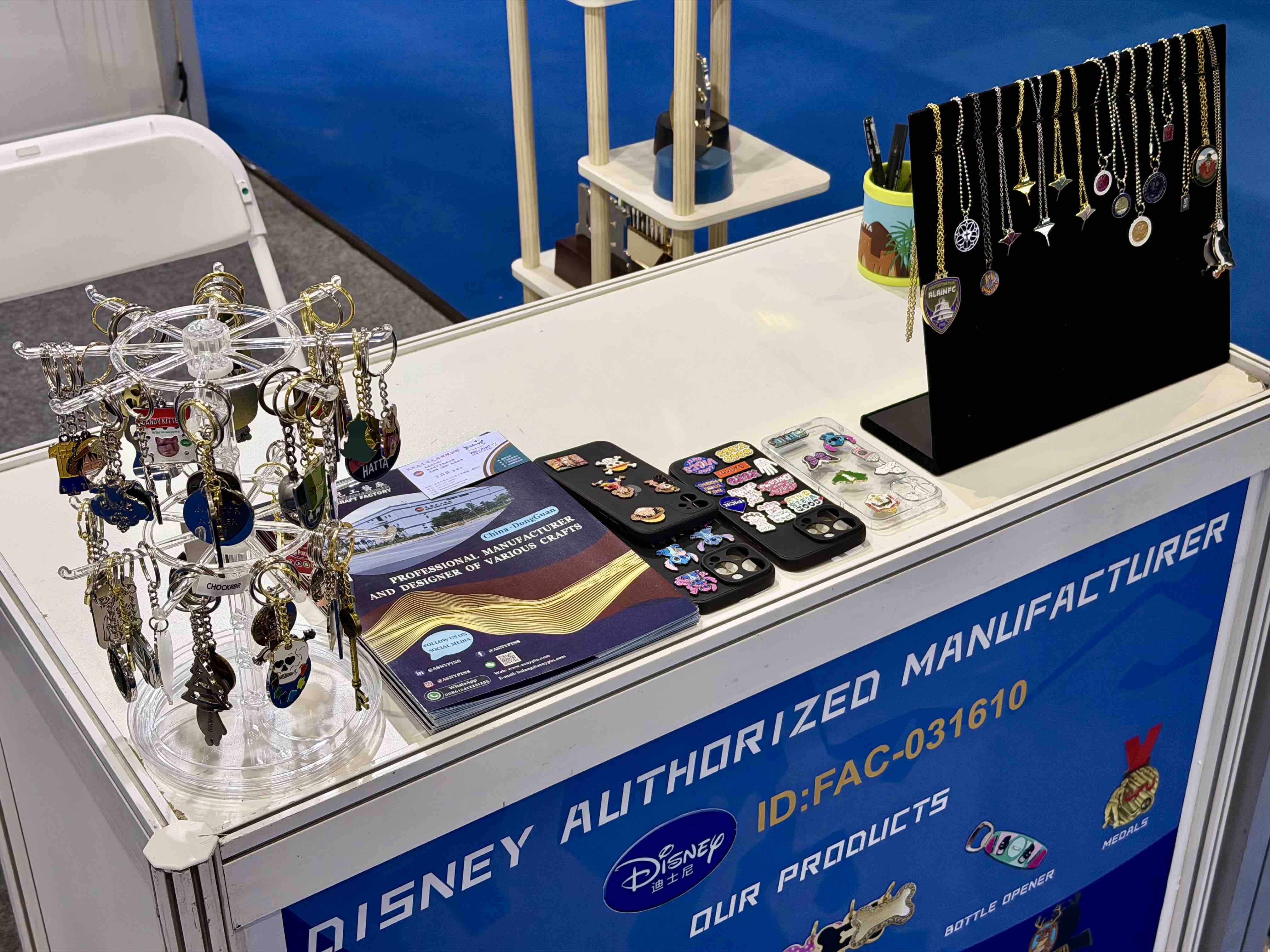 In addition to badges and keychains, the booth also displayed commemorative coins, medals, trophies, paperweights, and zinc alloy fashion accessories and jewelry, further demonstrating ASNY’s extensive coverage in metal craftsmanship.