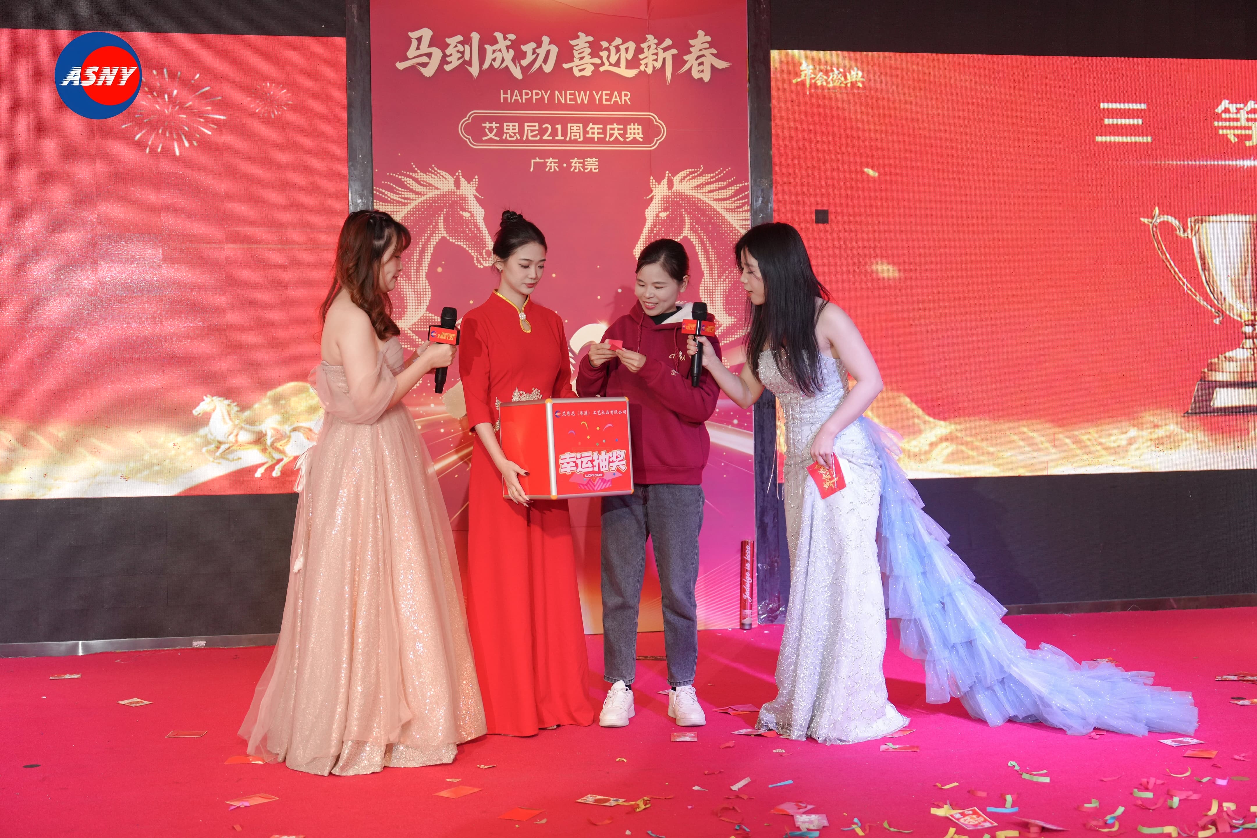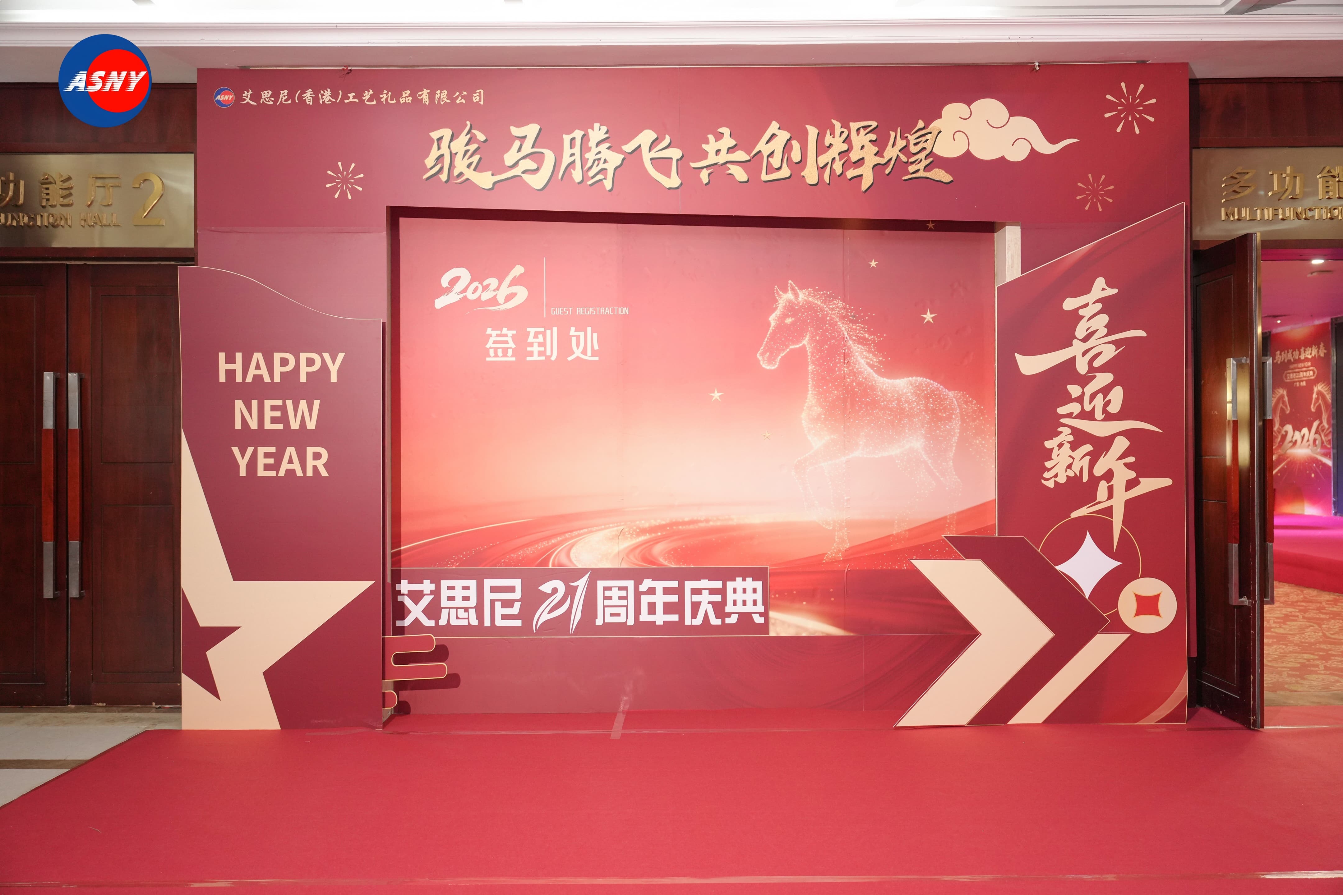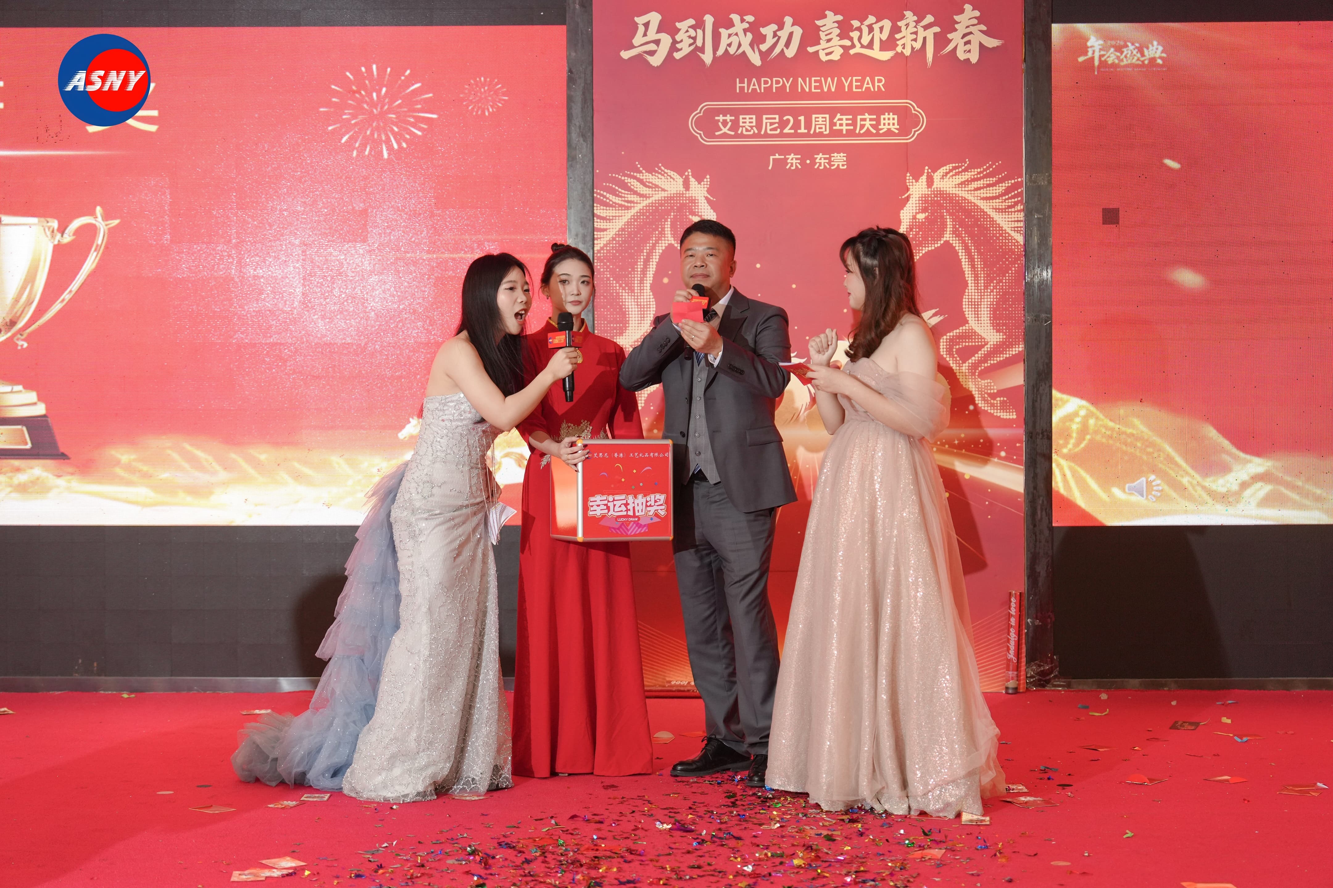 2025年岁末,艾思尼工艺礼品有限公司迎来了成立21周年的重要时刻。艾思尼20周年的盛大庆典相比,今年的周年庆显得更加温馨与轻松。公司邀请了各界嘉宾、来自各部门的同事及家人、长期合作的供应商伙伴齐聚一堂,在欢声笑语中共同度过了一个充满温度与欢乐的夜晚。
