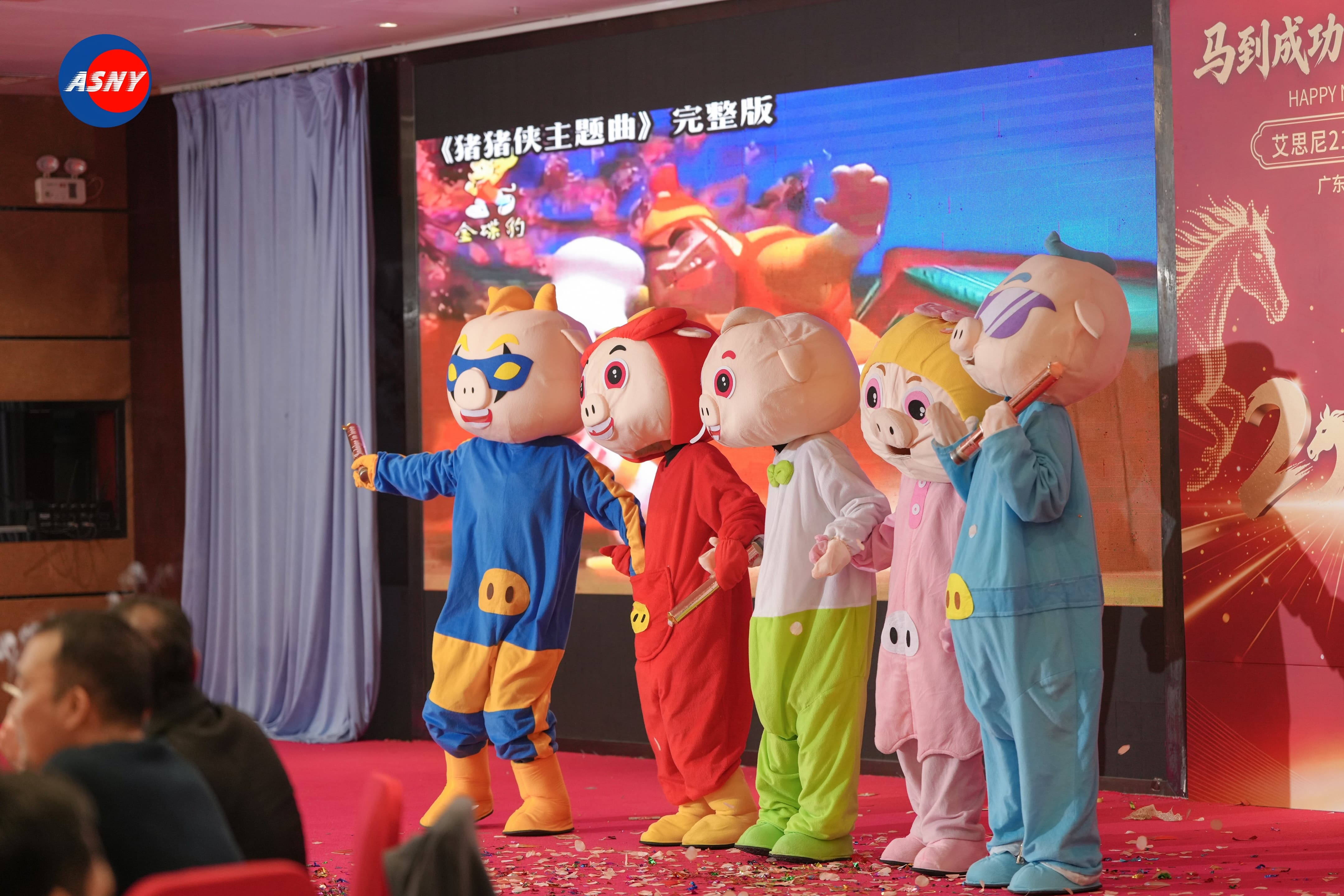 另一段备受欢迎的节目是舞蹈《猪猪侠》。五位来自生产车间的女同事身穿可爱的猪猪侠造型服装登场,一出场便引发阵阵笑声与掌声。她们生动活泼的表演充满童趣,也让晚会氛围更加轻松愉悦。